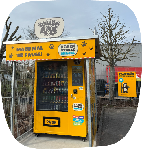 Wenn der Bärenhunger kommt, ist unser Snackautomat zur Stelle: Er versorgt Teams, Kunden und die gesamte Region rund um die Uhr. Ob klassische Snacks, gesunde Alternativen, regionale Produkte oder erfrischende Getränke – alles ist jederzeit direkt am Automaten verfügbar.
